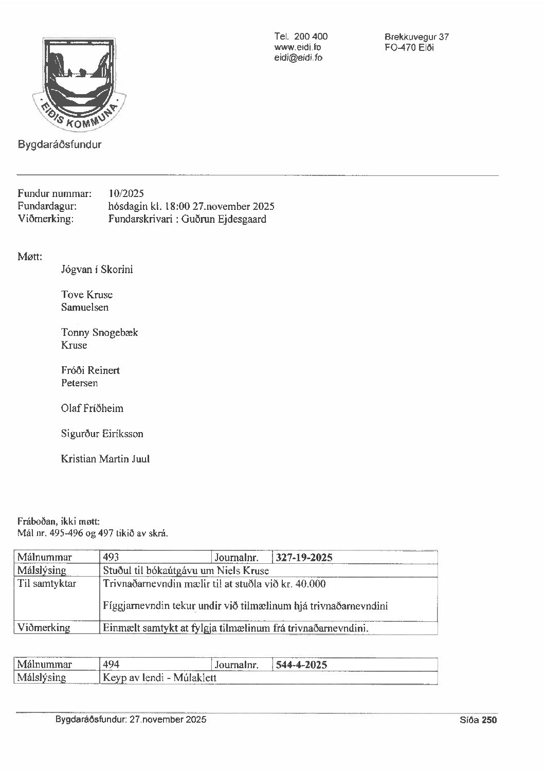 Beinleiðis: Bygdaráðsfundur 27.11.2025