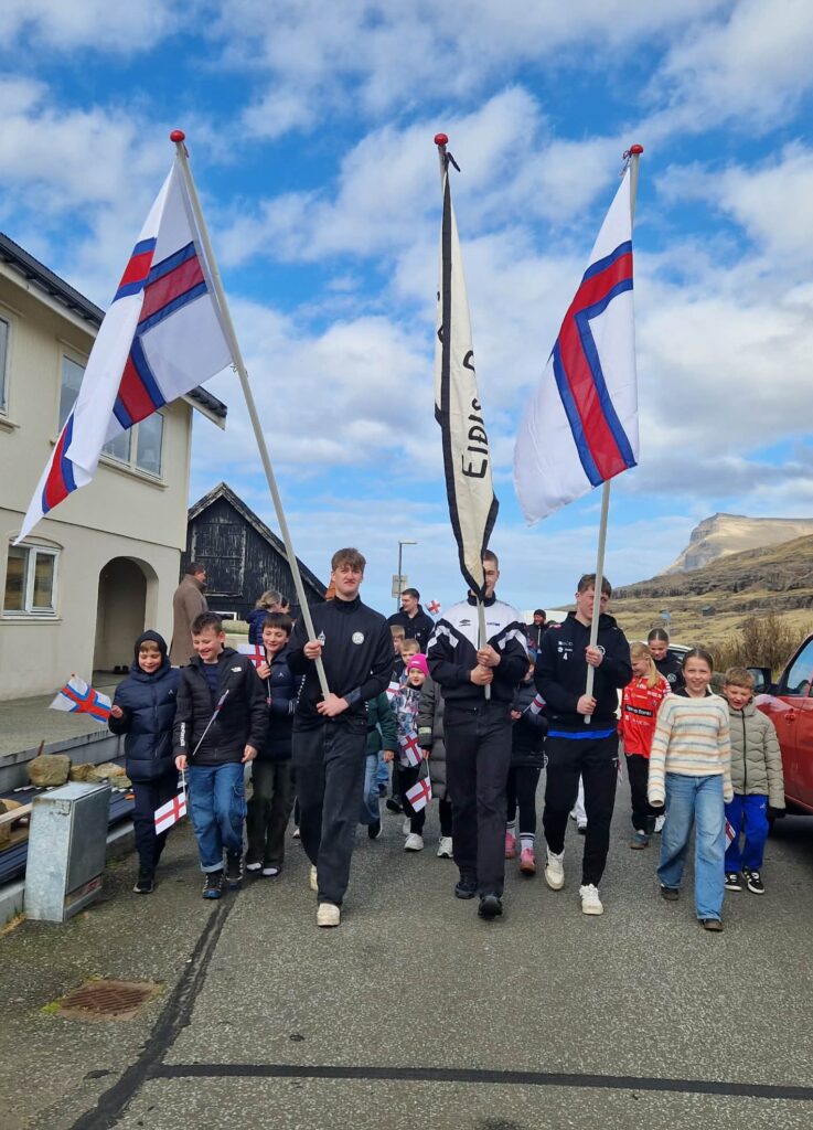 Sum vant byrjaði skrúgongan niðri í Múlavík. Umboð fyri Eiðis bóltfelag, ið samskipar tiltakið, gingu fremst. Veðrið var heilt gott hendan leygardagin, tó at tað var heldur kølið.