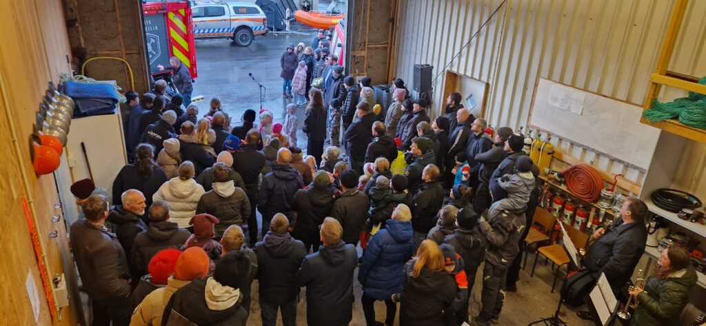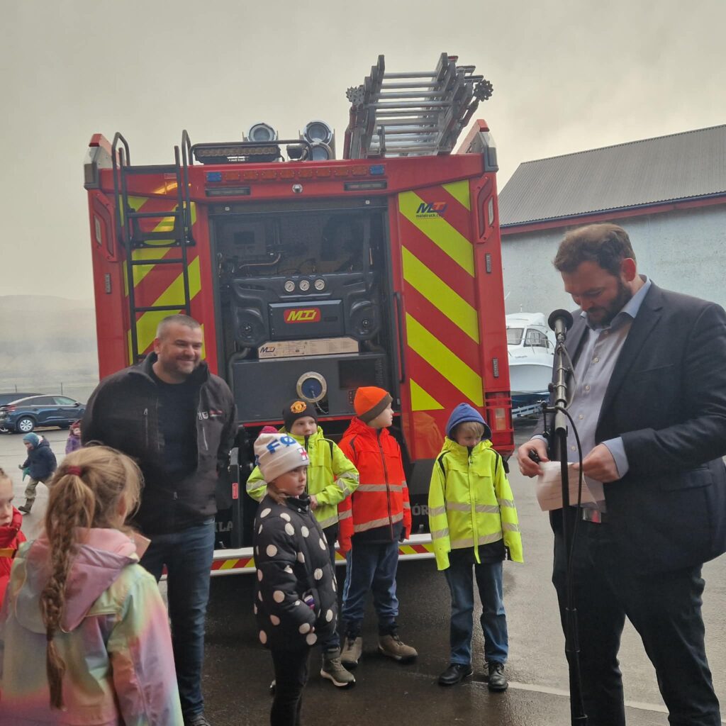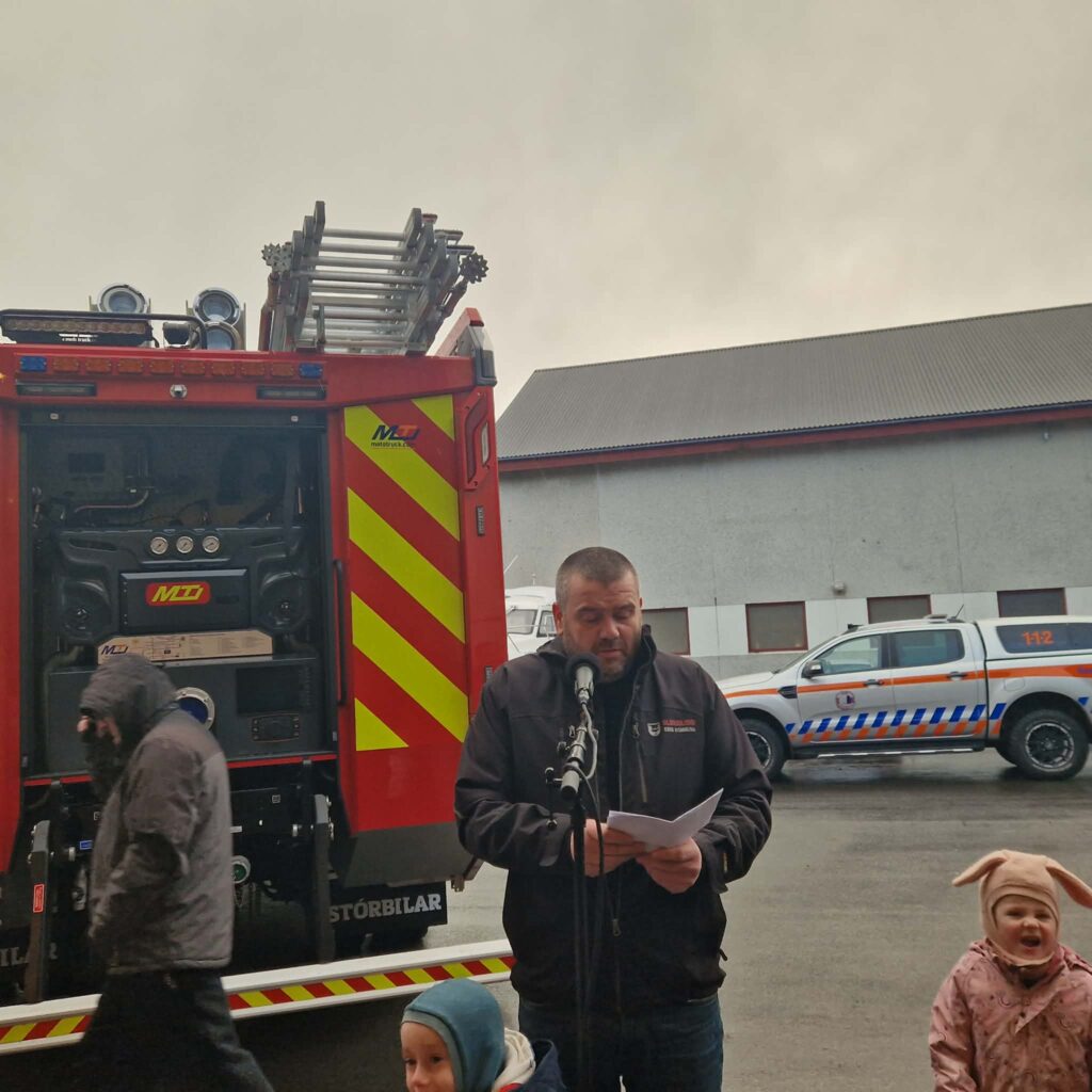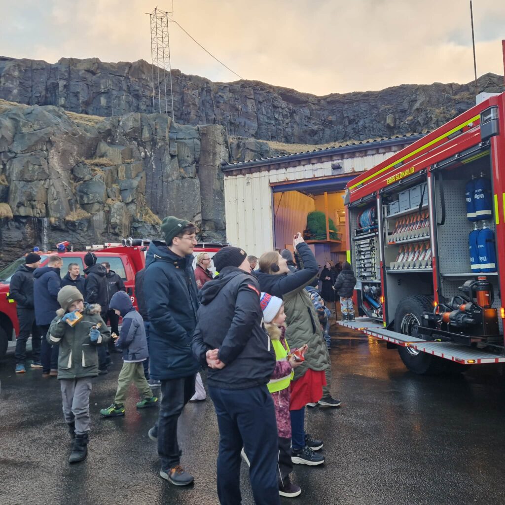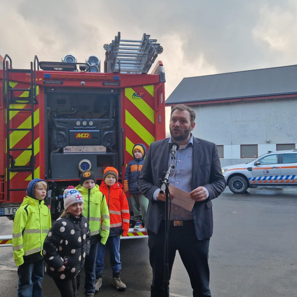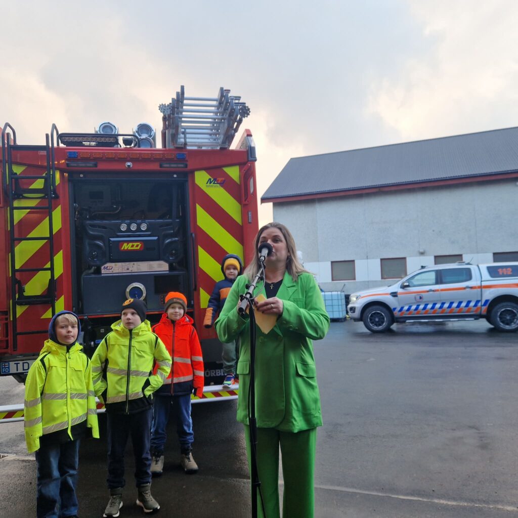 Kalt var í veðrinum hósdagin 5. mars, tá ið eiðisfólk vóru savnaði saman Uppi á Grind, í samband við at Eiðis sløkkilið hevur fingið nýggjan sløkkiliðsbil og nýtt búmerki. Tove Kruse Samuelsen, varaborgarstjóri setti tiltakið og segði fjøldini frá skránni.